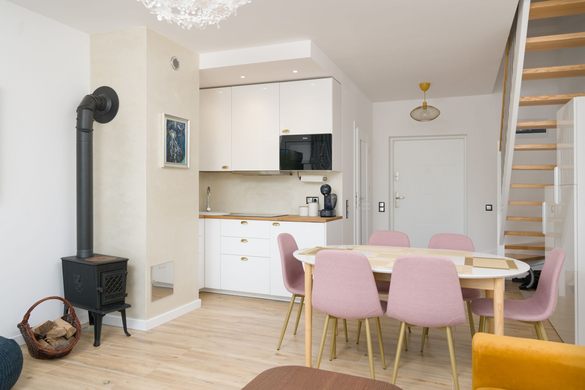 Apartament Meduza Komfort to przestronne, komfortowe mieszkanie o powierzchni 60 m², przeznaczone dla maksymalnie 6 osób. Wnętrze wyposażone jest w nowoczesne udogodnienia, które zapewniają wygodę i relaks podczas pobytu. Do dyspozycji gości jest m.in. bezprzewodowe Wi-Fi, ogrzewanie, taras oraz meble ogrodowe. Apartament posiada aneks kuchenny kompletnie wyposażony, w tym lodówkę, ekspres do kawy, toster oraz czajnik, co ułatwia samodzielne przygotowanie posiłków.